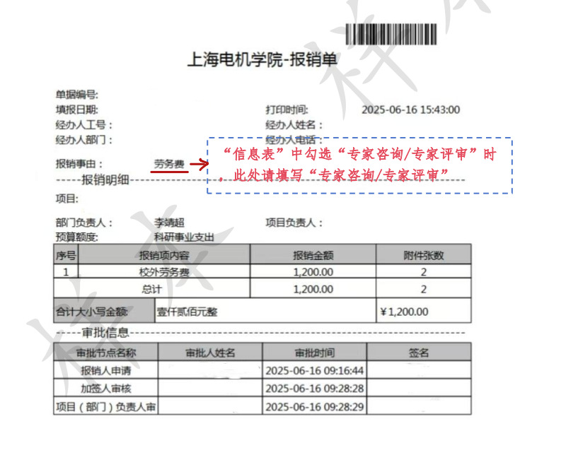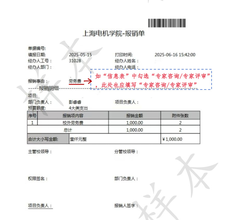 1、信息表勾选工作类别为“专家咨询/专家评审”,报销单报销事由需填写一致。
