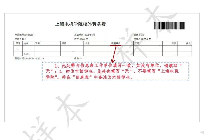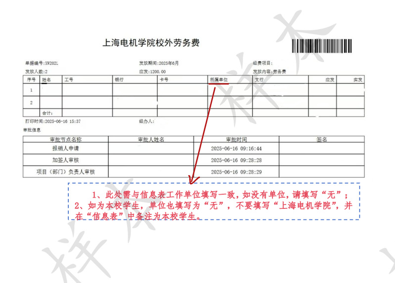 仅发放校外劳务费时,需附劳务费发放相关信息表