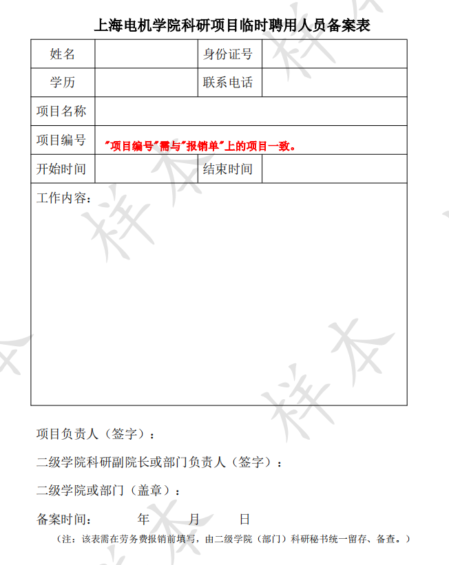 6、备案表项目编号需与实际报销项目一致,备案日期需在工作日期前。