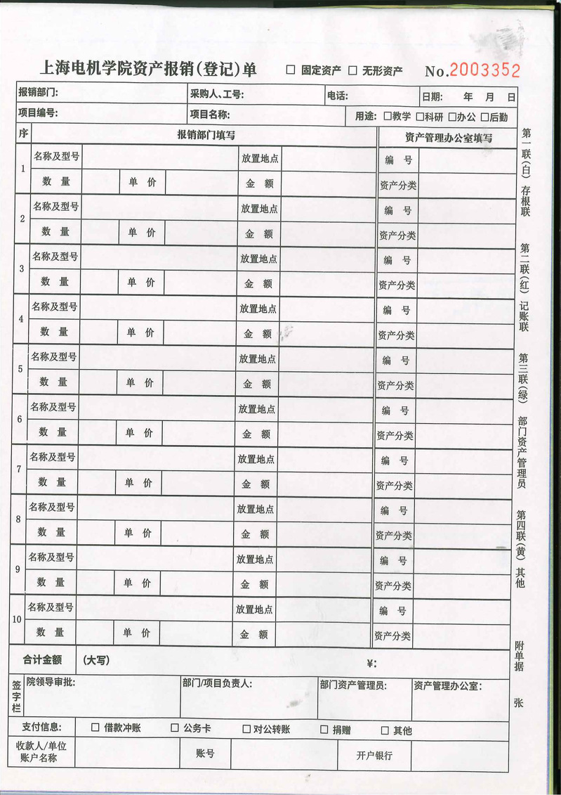 除科研项目外,其他项目报销材料费单笔报销金额3万(含)-10万元需附部门论证表,10万元及以上需附中标通知书;
